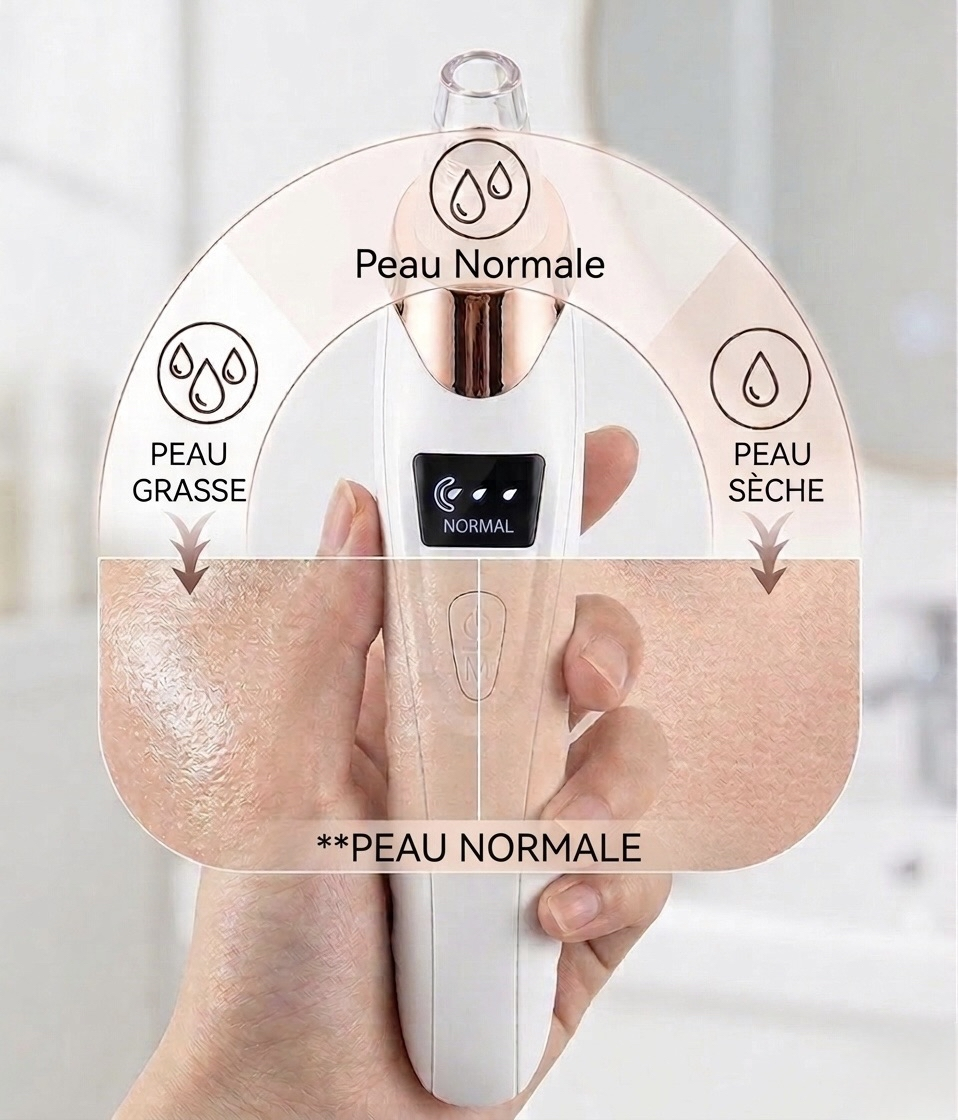 Ne prenez plus le risque d'irriter votre visage. Grâce à ses 3 modes intelligents (Dry, Normal, Oily), l'appareil adapte sa force d'aspiration selon votre sensibilité. Que vous ayez la peau sèche ou grasse, profitez d'une extraction efficace et sans douleur.